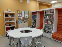 Игровая комната имеет 4 зоны: для спортивных игр, для настольных игр, для конструирования из мягких модулей, для рисования на маркерной доске. Приспособлена для лиц с ОВЗ и инвалидов по слуху